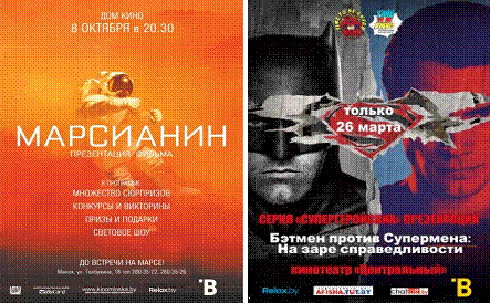 расположенных в ведущих кинотеатрах городов Республики Беларусь. На данный