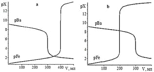Рис. 1. Криві комплексонометричного (рРе) та осаджувального