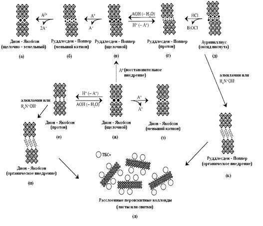 Рис. VI. Реакции ионного обмена и внедрения слоистых перовскитов