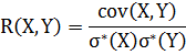 величинами X и Y . Коэффициент корреляции изменяется в пределах от -1