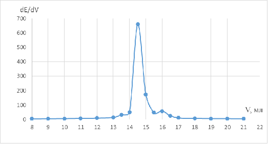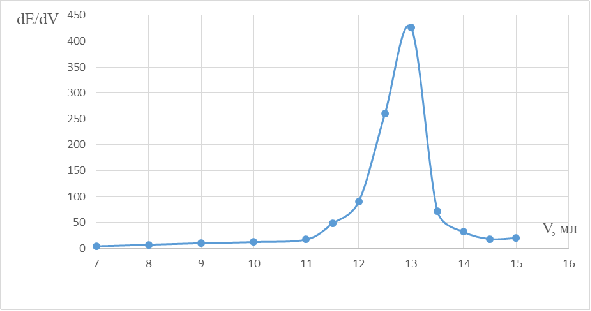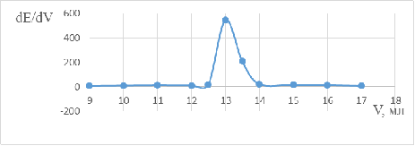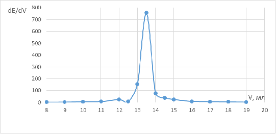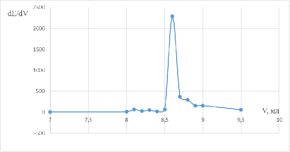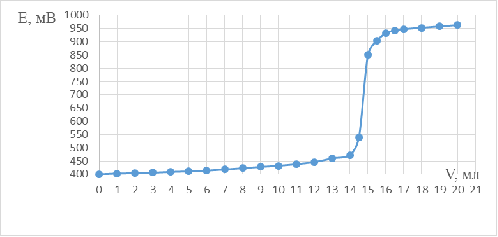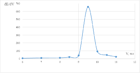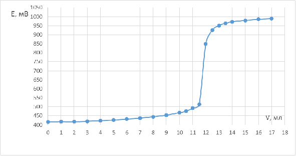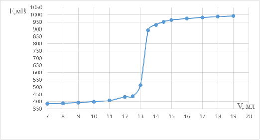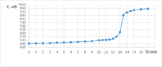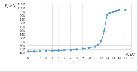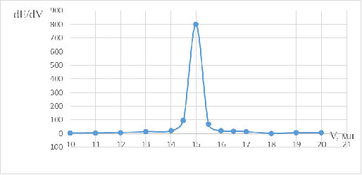 Строили графики зависимости потенциала от объёма титранта. Для определения точки