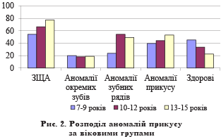 результатами наших досліджень, спостерігається ріст ортодонтичної патології у
