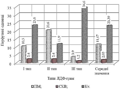 обстежених студентів було виявлено три типи ЛДФ-грам, які відповідають різним