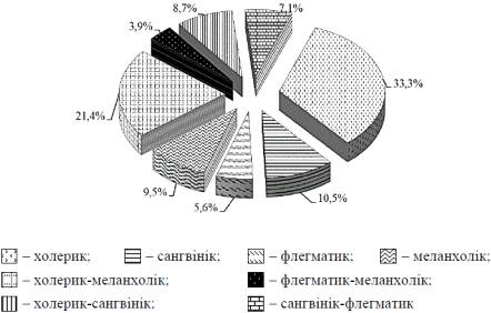 відповідали типам темпераменту холерик (33,3%) та сангвінік (10,5%). Відсоток