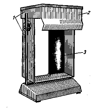 отражателем 2 и экраном 3, которые смонтированы на основании со стойками.