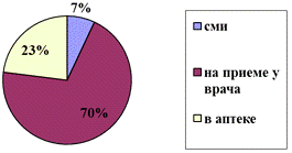 А)СМИ Б)На приеме у врача В)В аптеке.