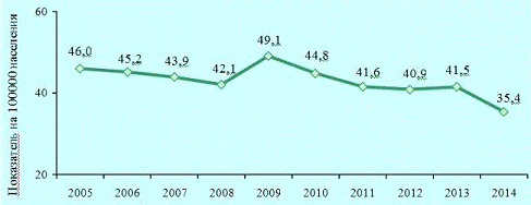 в 2015 году составила 4,1 на 100 тыс. населения, а годом ранее - 5,7 на 100