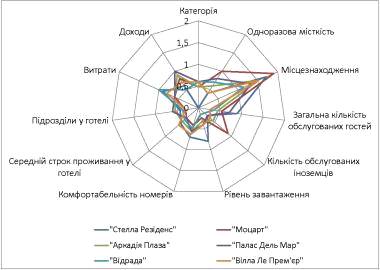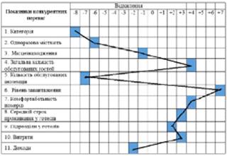 подальшого їх ранжування. Виявлено слабкі місця окремих готелів. готель конкурентоспроможність одеса конкурентний