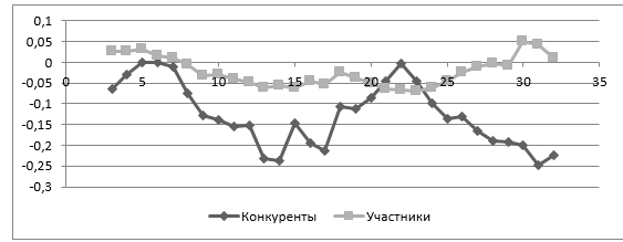 избыточная доходность для компаний, вступающих в сделку и их конкурентов на