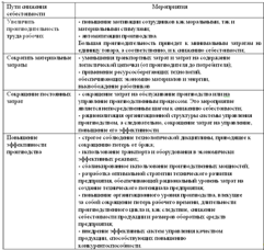 предприятия и его структурных единиц. Снижение уровня себестоимости продукции
