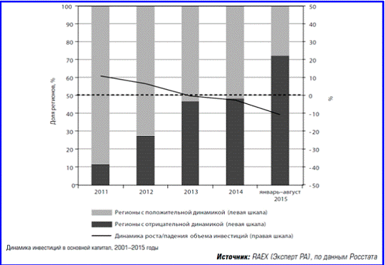 например, в 2014г. объем инвестиций в основной капитал вырос на 2,4% против