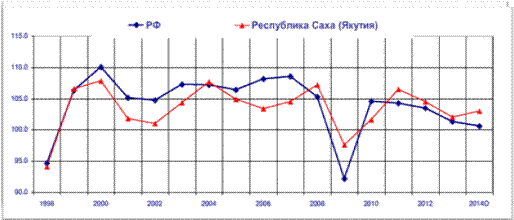 Рисунок. Индексы физического объема ВВП РФ и Республики Саха