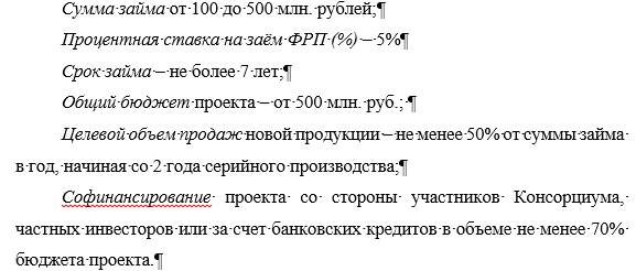 займы проектам консорциумов предприятий и инжиниринговых компаний по разработке
