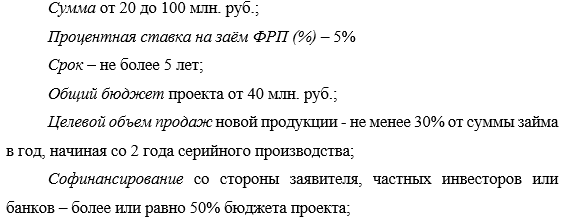 рамках которых возможно получение финансовой поддержки Фонда развития