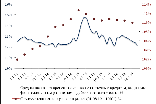 кредитам и стоимости жилья на первичном рынке (Источник: Банк России, Росстат)