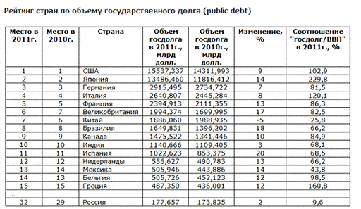 Внешний долг 50 крупнейших стран мира.// -2012/ -Режим доступа: