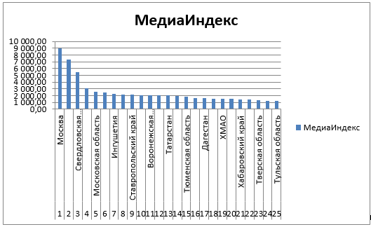 регионах РФ в программе microsoft excel