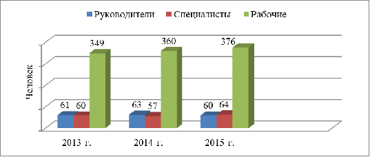 2013-2014 года и составляет 32,2%. Наибольшую долю в структуре персонала