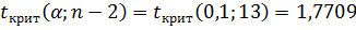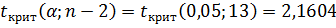 коэффициента, необходимо проверить его значимость, обратившись к Таблице
