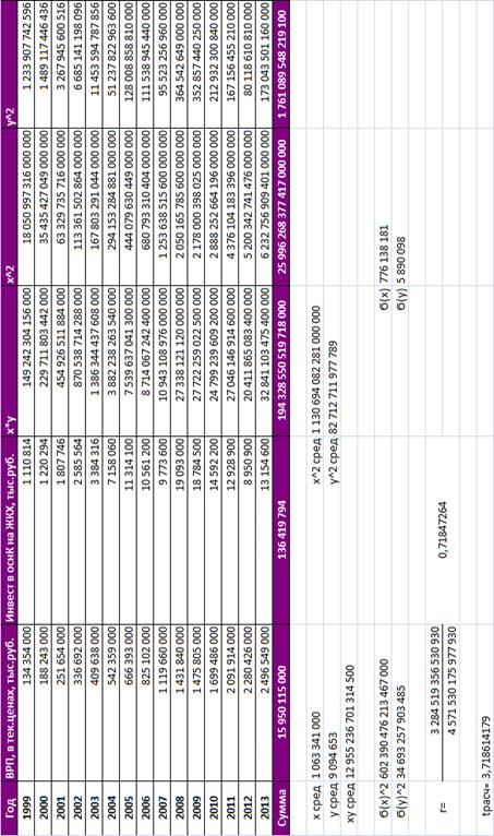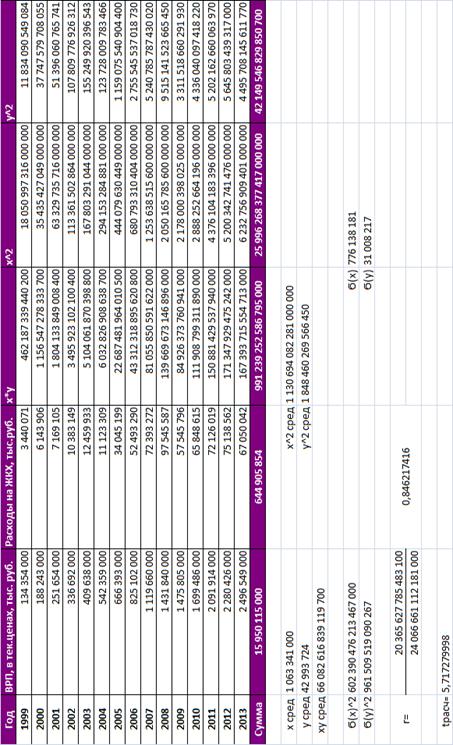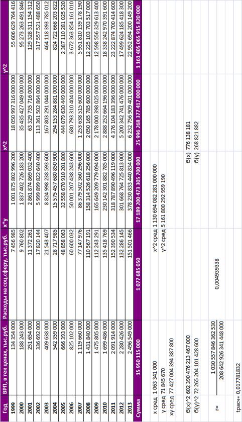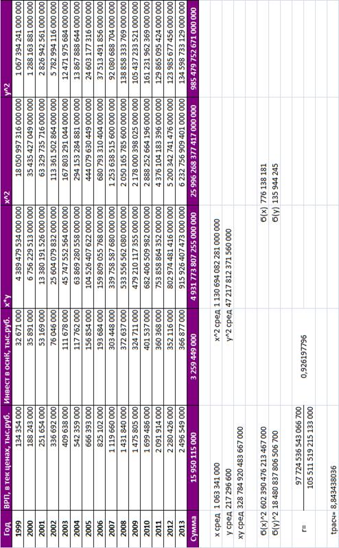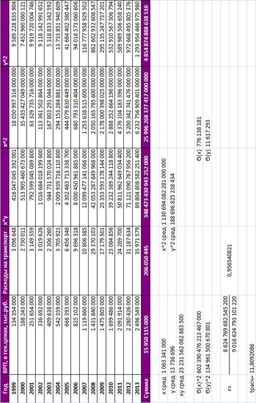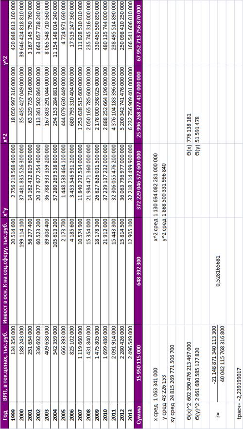 фактора (один из них для данного исследования - ВРП), между которыми выявляется