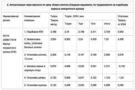 Табл 1. Актуализация норм времени по цеху сборки