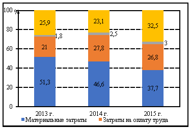 Таблица 3.3 - Расчеты изменения материалоемкости за 2013 г. и 2015 г.