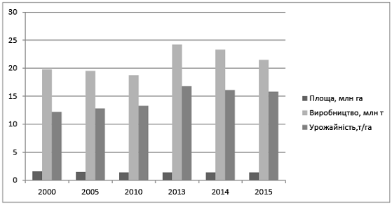 та їх забезпечення за роками (продукція рослинництва) [2].