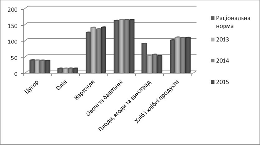 споживання продовольчих продуктів науково обґрунтованим нормам [3].