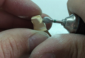 удаляется небольшой слой эмали и дентина - до 0,8 мм. Таким образом,