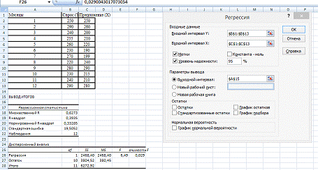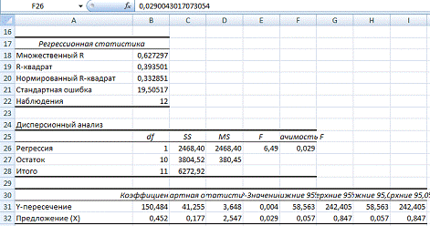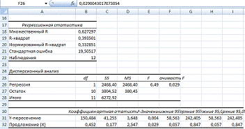 Регрессия из таблицы с регрессионной статистикой выпишем фактическое