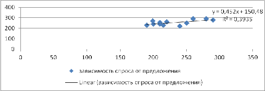 изменение спроса на 39,35% зависит от изменения предложения; 19,3% - влияние