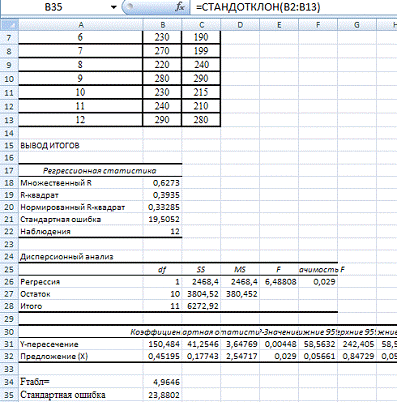стандартная ошибка) Sk=23,8802 (ячейка В35).