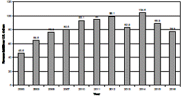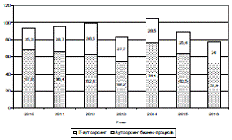 процесів - 31,0%. Вартість контрактів в 2016 р. зменшилась для обох видів: