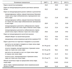 роль евро как мировой валюты на конец 2007-2013 гг.