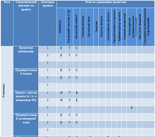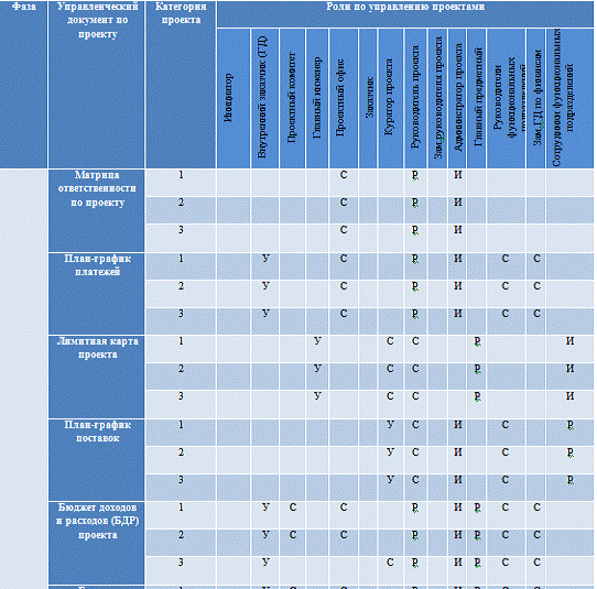 1: штатный рук. проекта; Категории 2 и 3: специалист отдела подготовки