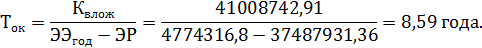 был рассчитан срок окупаемости проекта, который составил 8,59 лет.