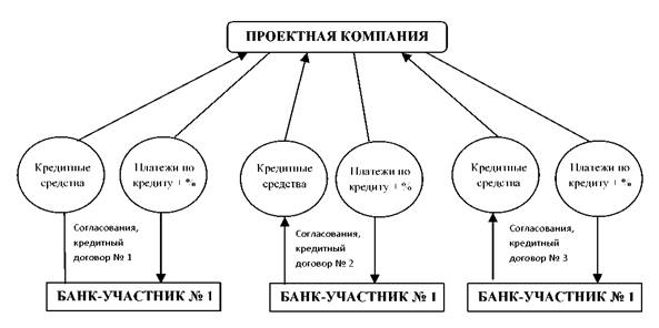 (синдиката банков). Ведущие банки работают со спонсорами проекта в период