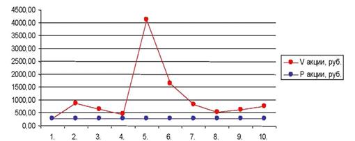 Рисунок 2 - Рыночная и инвестиционная стоимости акции «Роснефть»