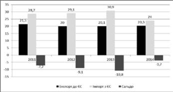 selected between Ukraine and ES. The tendencies of changes of export and import