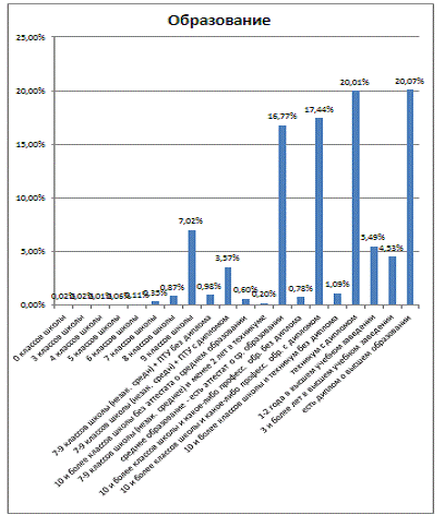 образование (есть аттестат о среднем образовании, 16,77%) и начальное