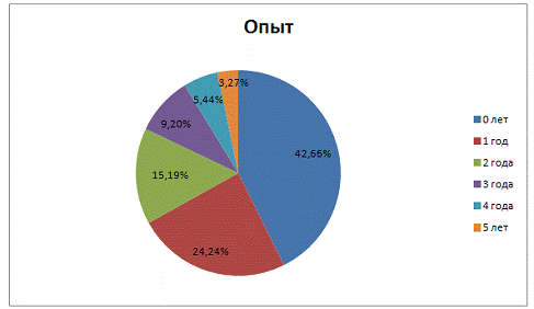 большинство индивидов имеет опыт работы на последнем месте рабочей деятельности