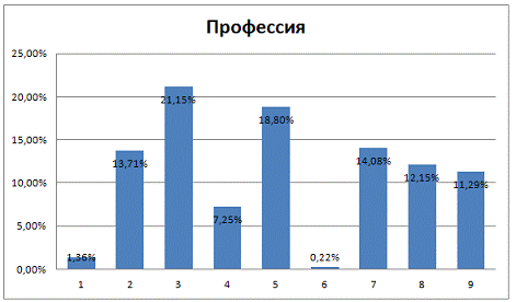 Значения цифр профессий от 1 до 9 гистограммы 5