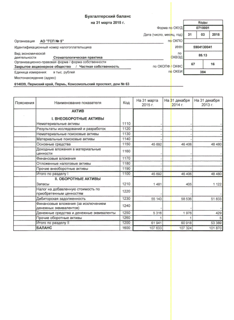 Бухгалтерский баланс ЗАО «ГСП №5»