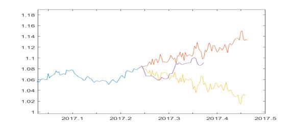 результатов. Был рассмотрен временной ряд значений валютной пары EUR/USD, поведение которого допускает описание стохастическим