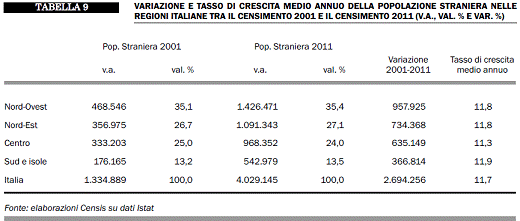 Севере на 100 итальянцев приходится 11 иностранных граждан, тогда как на Юге -