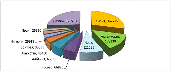 доля сирийских и афганских мигрантов). Данным путем в 2015 году воспользовалось