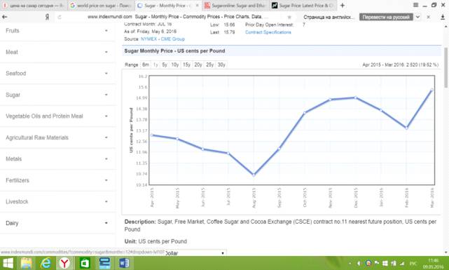 сельскохозяйственным рынком, так как одной из отличительных особенностей сахара