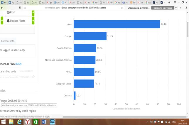 Данный товар производится в более чем 100 странах мира. Изучение рынка сахара
