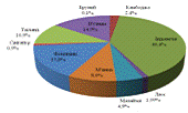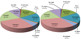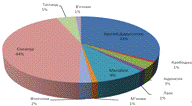 Індонезія, Філіппіни, В’єтнам і Таїланд, а найменшу частку складають
