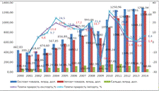 темпи приросту імпорту (%) протягом 2000-2014 рр.